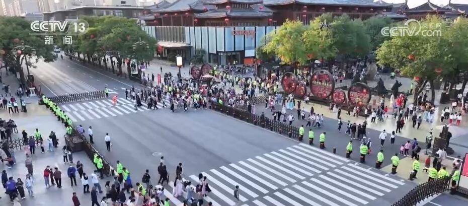 西安大唐不夜城是很多游客到西安必打卡的景點(diǎn)之一。今年中秋國(guó)慶假期頭兩天,大唐不夜城的日均客流量達(dá)到40萬(wàn)人。聚起了人氣之后,怎樣保證數(shù)十萬(wàn)游客能夠平安順暢出行,成為景區(qū)面臨的第一道難題。