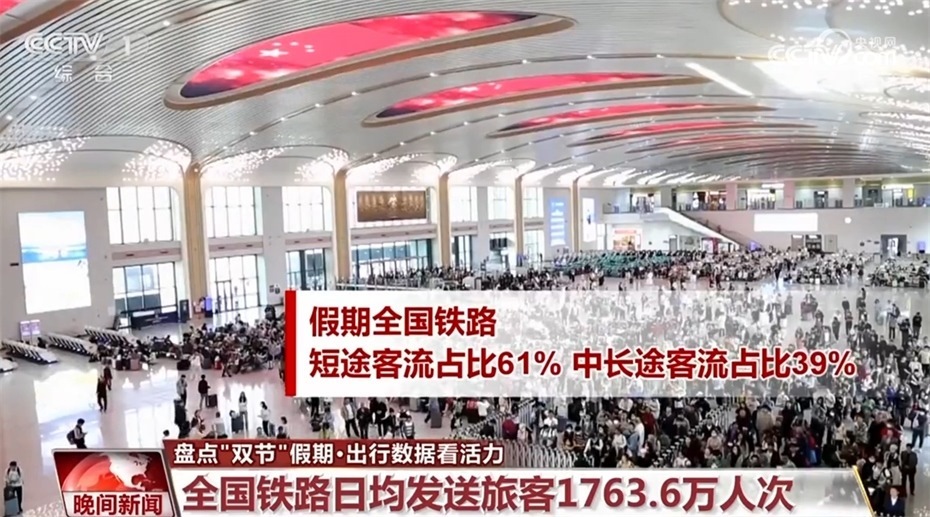 鐵路方面,今年假期,全國(guó)鐵路日均發(fā)送旅客1763.6萬(wàn)人次。其中,9月29日發(fā)送旅客2009.8萬(wàn)人次,創(chuàng)單日旅客發(fā)送量歷史新高。假期全國(guó)鐵路短途客流占比達(dá)到了61%,中長(zhǎng)途客流占比為39%。