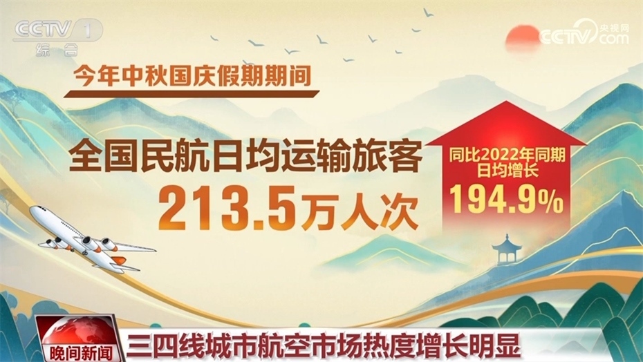 民航方面,今年中秋國(guó)慶假期期間,全國(guó)民航日均運(yùn)輸旅客213.5萬(wàn)人次,同比2022年同期日均增長(zhǎng)194.9%。除了北京、上海、重慶、三亞等熱門城市航線火爆外,三四線城市的航空市場(chǎng)熱度增長(zhǎng)明顯,直接帶動(dòng)了當(dāng)?shù)氐慕?jīng)濟(jì)。