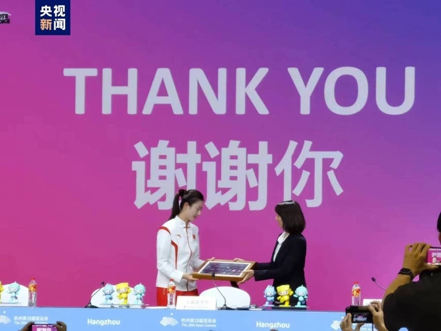 10月7日上午,亞奧理事會在杭州亞運會主媒體中心召開新聞發(fā)布會,公布了運動員委員會委員選舉結(jié)果。奧運冠軍、前中國女子乒乓球運動員丁寧當選為亞奧理事會運動員委員會委員。