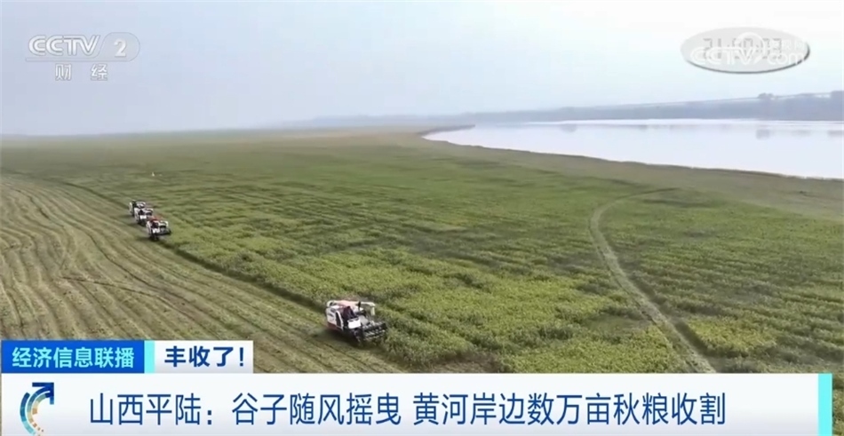 日前,位于山西平陸黃河岸邊的數(shù)萬畝秋糧作物迎來豐收,金燦燦的谷子隨風(fēng)搖曳,忙碌的收割機(jī)穿梭田間。我們一起去看看。