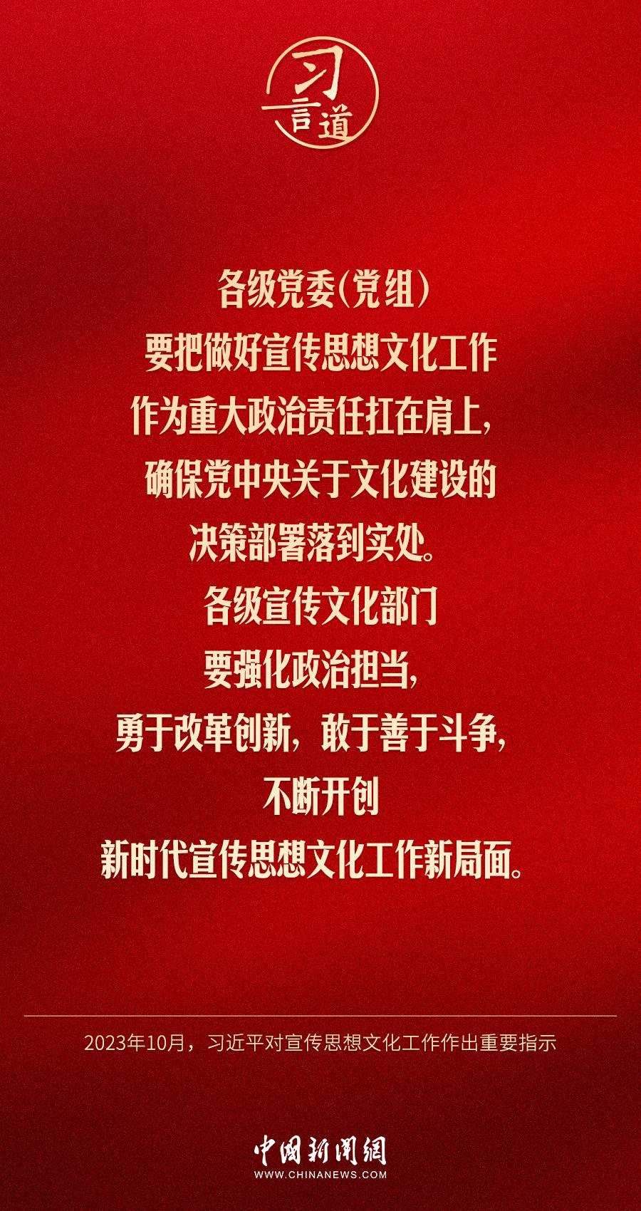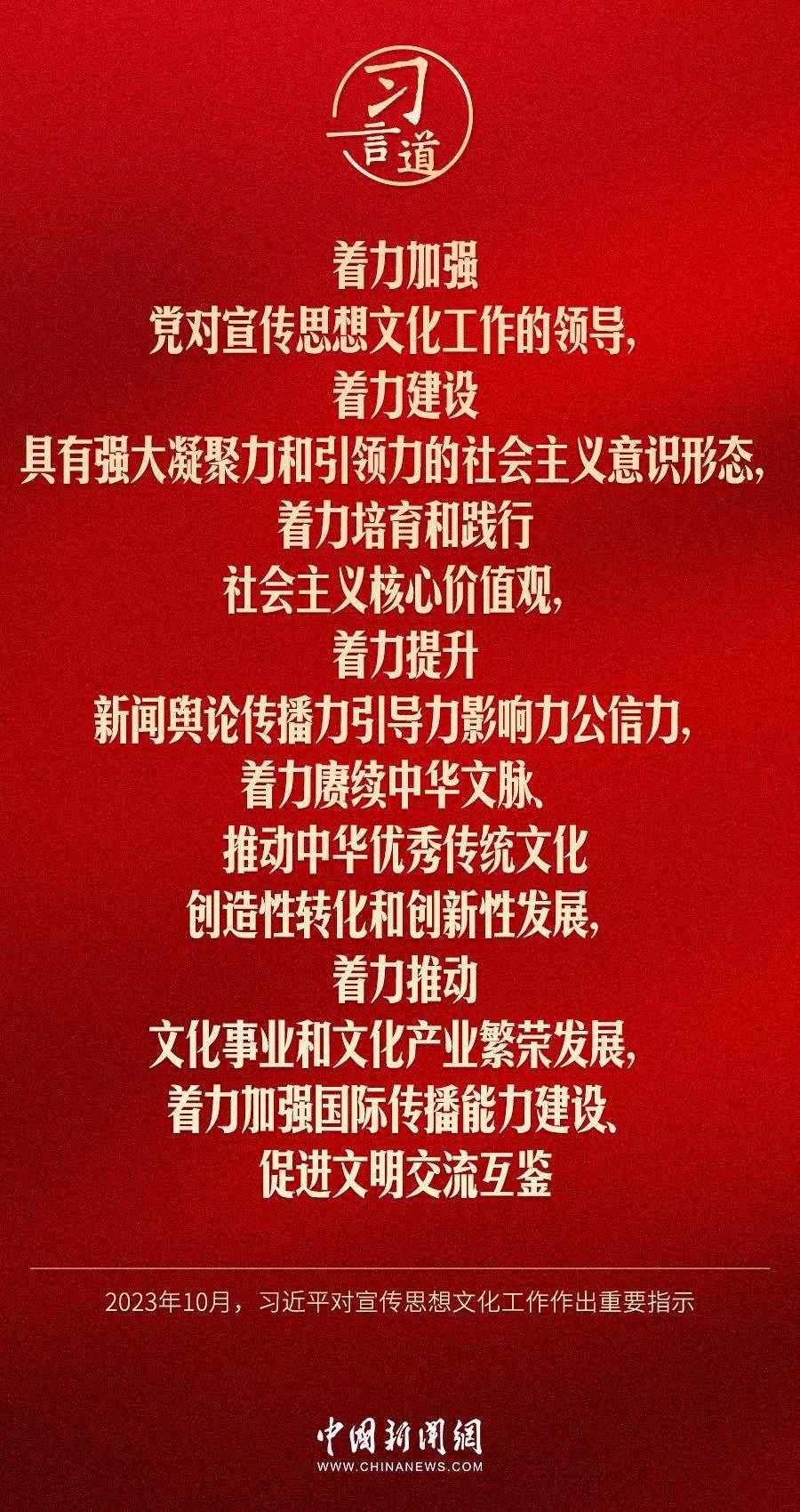 中共中央總書記、國家主席、中央軍委主席習近平近日對宣傳思想文化工作作出重要指示,他指出——