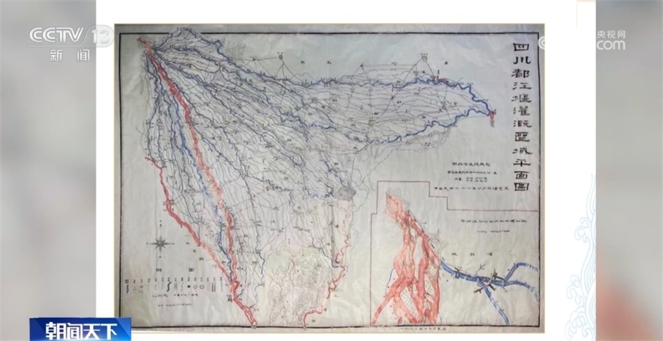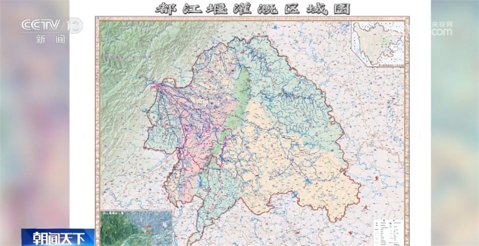 四川省都江堰水利發(fā)展中心副主任 吳鑒:這幅圖是在新中國成立之前的一張都江堰灌溉的平面圖。從圖上可以顯示,(當時)整個都江堰只灌溉了14個縣282萬畝的農(nóng)田。這是我們今年新繪制的都江堰灌溉區(qū)域圖。從這個圖上可以看到,以都江堰作為頂沖點,整個都江堰灌區(qū)變得更大了,扇面進一步擴大了。