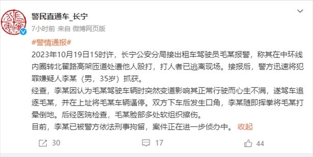 ·男子別停出租車(chē)打暈司機(jī),警方:對(duì)出租車(chē)突然變道心懷不滿(mǎn),已刑拘。