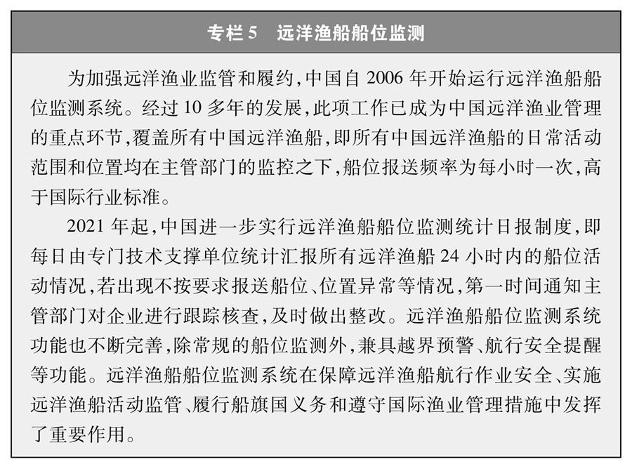 作為負(fù)責(zé)任的漁業(yè)國(guó)家,中國(guó)嚴(yán)格執(zhí)行《聯(lián)合國(guó)海洋法公約》以及加入的多邊漁業(yè)協(xié)定,從總量控制、限制船數(shù)、數(shù)據(jù)收集報(bào)送和國(guó)家觀(guān)察員制度等方面全面履行船旗國(guó)義務(wù)②,取得積極成效。