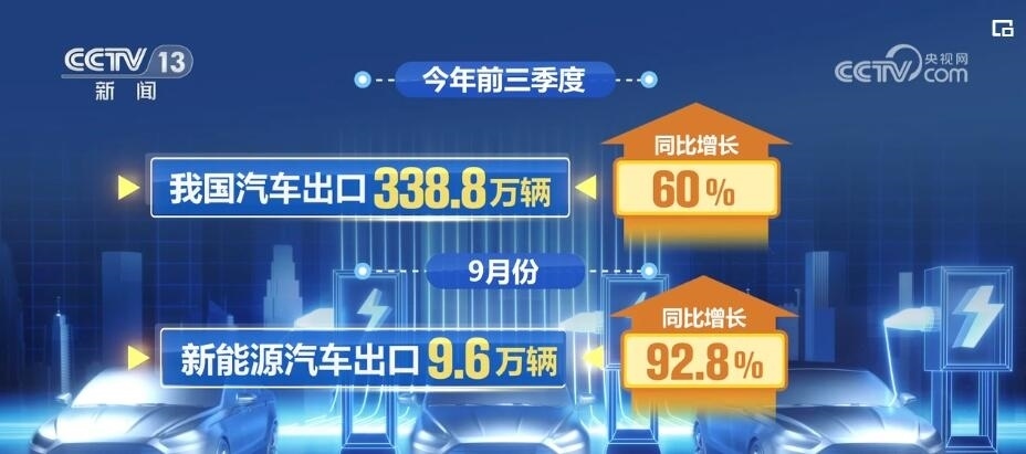 今年前三季度,我國(guó)汽車(chē)出口338.8萬(wàn)輛,同比增長(zhǎng)60%。這其中,新能源汽車(chē)的出口增幅十分強(qiáng)勁。其中9月份,新能源汽車(chē)出口9.6萬(wàn)輛,同比增長(zhǎng)92.8%。在不少?lài)?guó)家,中國(guó)的新能源汽車(chē)已經(jīng)成為當(dāng)?shù)匦履茉雌?chē)銷(xiāo)量的總冠軍。分析背后的原因,“固本興新”是關(guān)鍵詞,新能源汽車(chē)正為中國(guó)外貿(mào)注入新的動(dòng)能。據(jù)中國(guó)汽車(chē)工業(yè)協(xié)會(huì)的預(yù)計(jì),2023年汽車(chē)出口將超過(guò)400萬(wàn)輛,其中新能源汽車(chē)將超過(guò)100萬(wàn)輛。