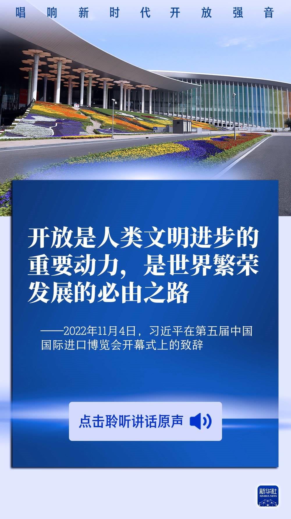開放是當(dāng)代中國的鮮明標(biāo)識。習(xí)近平主席說,舉辦中國國際進(jìn)口博覽會,是中國著眼于推動新一輪高水平對外開放作出的重大決策,是中國主動向世界開放市場的重大舉措。習(xí)主席在歷屆進(jìn)博會上的重要講話,發(fā)出開放合作的時(shí)代強(qiáng)音,為建設(shè)開放型世界經(jīng)濟(jì)注入正能量。