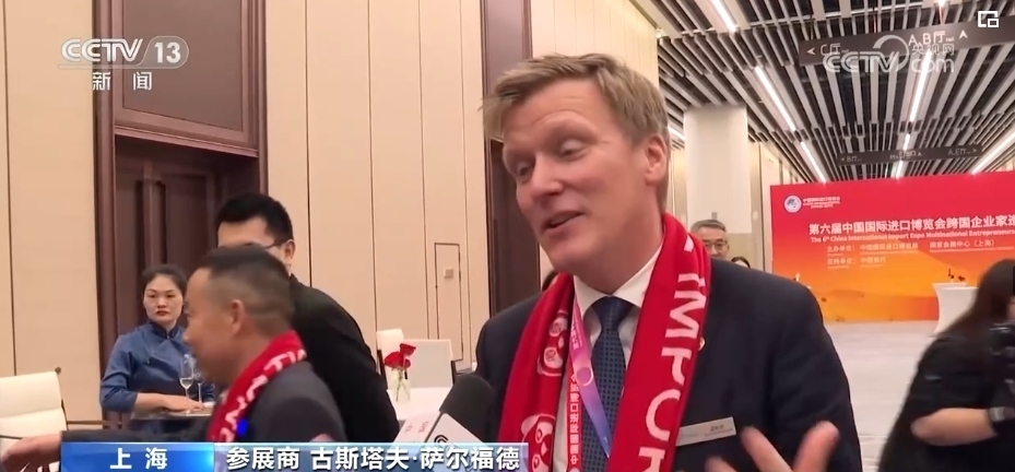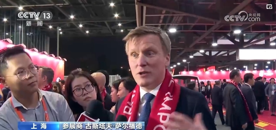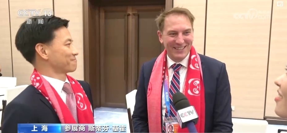 參展商 胡凱誠(chéng):我們今天第一次見面,而且我們發(fā)現(xiàn),我們都在中國(guó)待了42年。每個(gè)人都因?yàn)橥瑯拥脑騺淼竭@里,這是所有國(guó)際企業(yè)和中國(guó)合作伙伴之間合作的絕佳平臺(tái)。