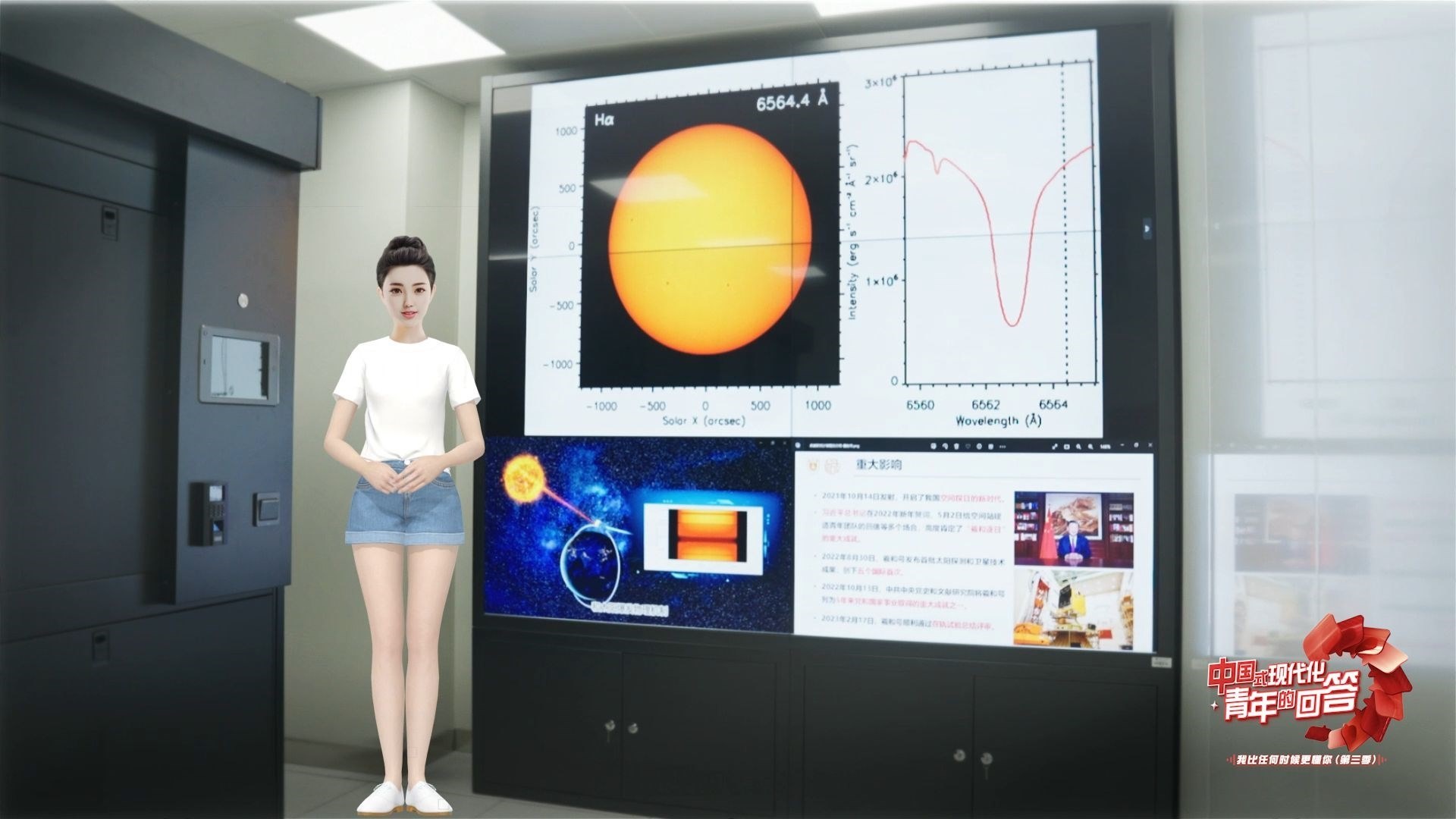 什么是Hα譜線?AI數(shù)字人小青解釋:“Hα譜線是太陽最強最粗的吸收線之一。通過研究太陽Hα譜線,可以巧妙反推出太陽的速度、溫度、密度等信息,進(jìn)而能研究太陽低層大氣的等離子體運動和爆發(fā)現(xiàn)象背后的機理,對太陽爆發(fā)活動作出預(yù)報。”