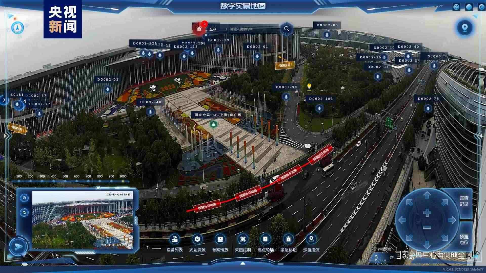 為強化精準指揮調度,消防部門專門制作了國家會展中心的三維模型,將本屆參展的1888個展位全部進行了數(shù)字化標識,在指揮平臺主頁面可實現(xiàn)目標展位一鍵搜索和快速定位。以6.1號館為試點,通過激光雷達和可見光融合傳感器進行快速掃描,建立展臺的三維精模,配置安保模型算法,將現(xiàn)場監(jiān)控攝像頭傳回的二維畫面與三維模型匹配,實現(xiàn)虛實場景交互融合。同時通過采集巡館人員面部、著裝等特征信息,利用AI算法,實時在館內人群中標定巡館人員,進行精準定位。一旦發(fā)現(xiàn)異常狀況,指揮部值班人員能快速、精準地向所有駐防人員提供最佳處置線路指引和最優(yōu)輔助決策。