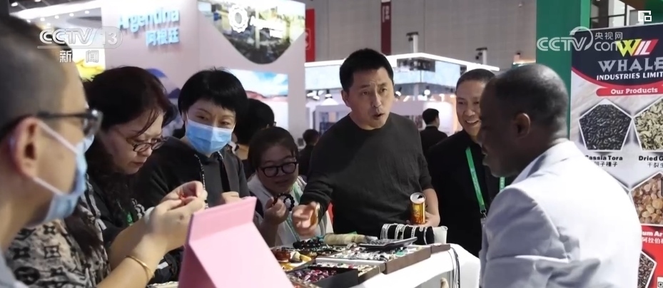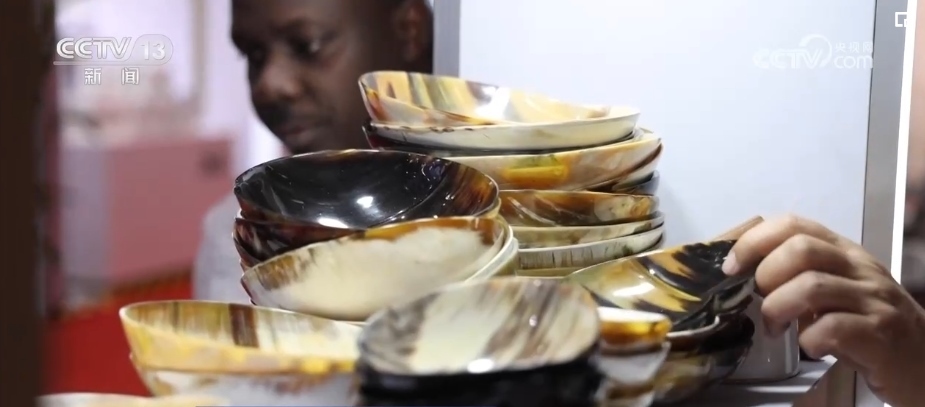 不僅是“回頭客”收獲滿滿,“頭回客”烏干達(dá)商人蒂莫西表示感到十分驚喜。他是第一次來(lái)參展,只拿到了3層貨架的展位。但是,來(lái)自烏干達(dá)的牛角梳等牛角手工藝品,吸引了不少訪客駐足詢問(wèn)。