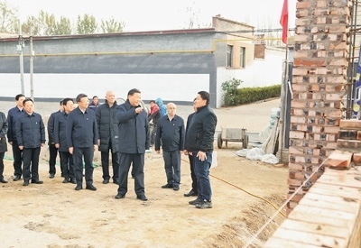 11月10日,中共中央總書記、國(guó)家主席、中央軍委主席習(xí)近平在北京、河北考察災(zāi)后恢復(fù)重建工作。這是10日下午,習(xí)近平在河北保定涿州市刁窩鎮(zhèn)萬全莊村房屋重建施工現(xiàn)場(chǎng)考察。新華社記者 鞠 鵬攝