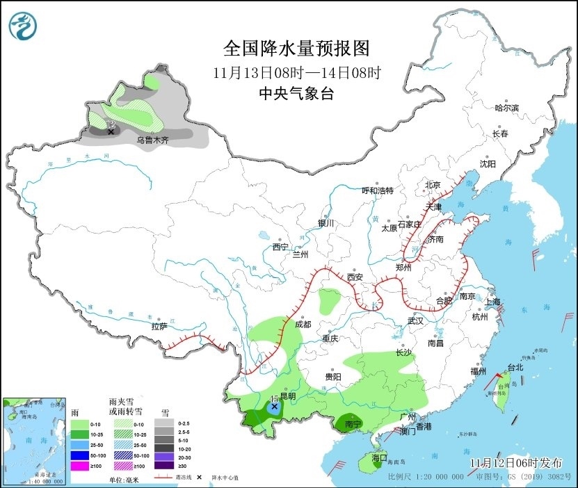 雨雪方面,預計未來三天,全國大部地區(qū)降水較弱,西南地區(qū)東部、江漢、江南、華南等地有陰雨天氣,整體以小雨為主,有分散的中雨或大雨,局地暴雨。另外,13日,新疆北部和沿天山地區(qū)的部分地區(qū)將有小到中雪或雨夾雪,局地有大到暴雪。