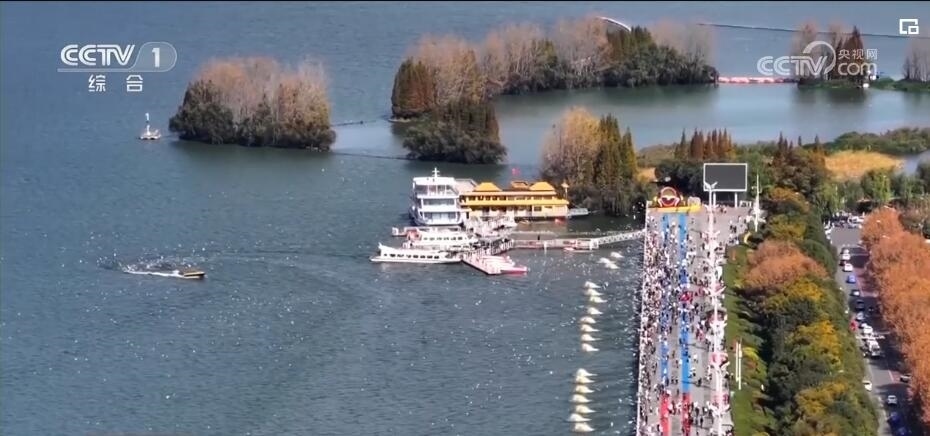 央視網(wǎng)消息:天氣轉(zhuǎn)冷,候鳥越冬南遷。成群結(jié)隊的候鳥或翱翔于濕地上空,或漫游于水面之上,與天空水面交相輝映,構(gòu)成了冬日里的一幅美麗畫卷。