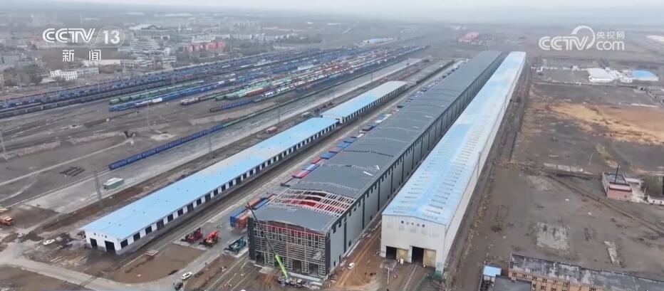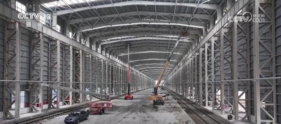 總臺(tái)記者 崔寧:在我的身后有一小一大、一舊一新兩座換裝庫,它們主要是對(duì)入境的中歐班列進(jìn)行換裝。小的這座看起來也比較舊,它建于2008年,到目前為止已經(jīng)投用了整整15年。隨著“一帶一路”倡議的不斷推進(jìn),現(xiàn)在經(jīng)阿拉山口口岸出入境的中歐班列數(shù)量已經(jīng)由最初月均3.5列增加到日均17列。所以,它的存在也已經(jīng)遠(yuǎn)遠(yuǎn)不能滿足現(xiàn)在發(fā)展的需求,也正因?yàn)槿绱?,在它的旁邊又新建了一座大的換裝庫,它建成投用之后將取而代之成為目前亞洲最大的室內(nèi)集裝箱換裝庫。