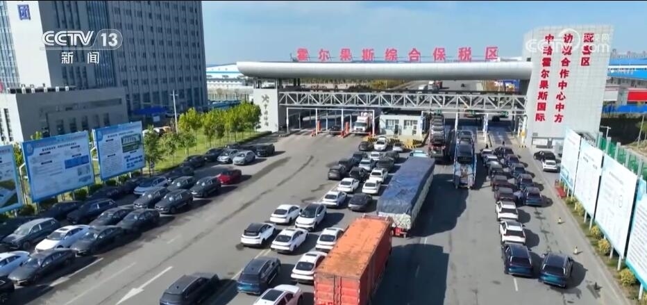 總臺(tái)記者 崔寧:看我的腳下,這邊是中國(guó)的土地,這邊是哈薩克斯坦的土地。人們?cè)谶@里可以一腳踏兩國(guó),自由地往來出入,不僅可以旅游購物、貿(mào)易洽談,還能享受免稅政策。