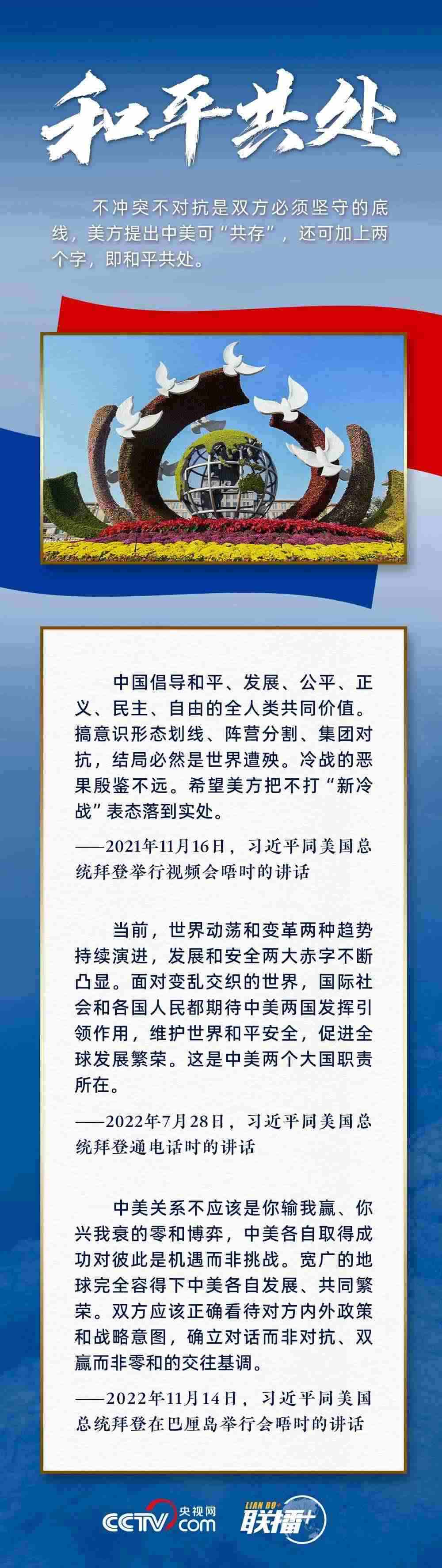 “中美不沖突、不對抗、和平共處,這是兩國最基本的共同利益。”習主席指出,遵守國際關系基本準則和中美三個聯(lián)合公報,這是雙方管控矛盾分歧、防止對抗沖突的關鍵,也是中美關系最重要的防護和安全網。