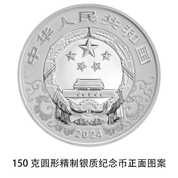 150克圓形銀質(zhì)紀(jì)念幣為精制幣,含純銀150克,直徑70毫米,面額50元,成色99.9%,最大發(fā)行量8000枚。