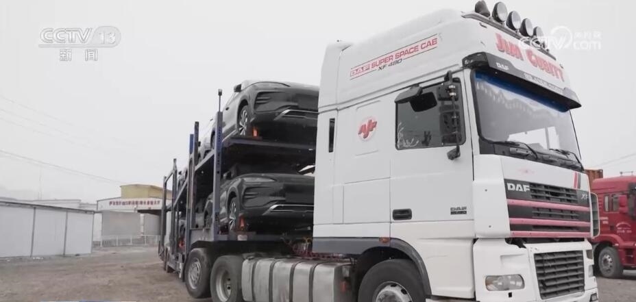 總臺(tái)記者 劉菲:在伊爾克什坦口岸的貨場(chǎng)里,我們看到很多輛像我身后這樣搭載著商品車(chē)的掛車(chē),粗略地?cái)?shù)一數(shù),一個(gè)小時(shí)的時(shí)間里,像這樣的車(chē)就是六七輛。今年以來(lái),在南疆的公路口岸中,伊爾克什坦口岸出口的商品車(chē)數(shù)量居于首位。?