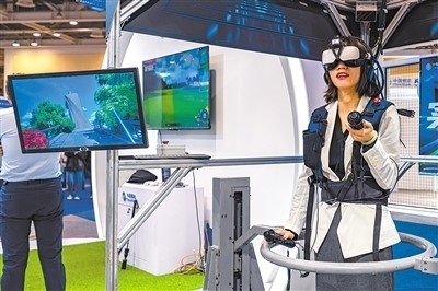 第二十一屆中國(蘇州)電子信息博覽會(huì)日前在蘇州工業(yè)園區(qū)舉辦。圖為觀眾在博覽會(huì)上體驗(yàn)5G+元宇宙游戲。張 鋒攝(人民視覺)