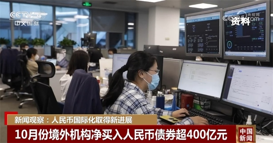 10月,境外機(jī)構(gòu)凈買入人民幣債券超400億元,創(chuàng)下過去四個(gè)月以來新高。截至10月末,共有1110家境外機(jī)構(gòu)主體進(jìn)入中國債券市場,顯示人民幣投融資和避險(xiǎn)功能逐步增強(qiáng)。