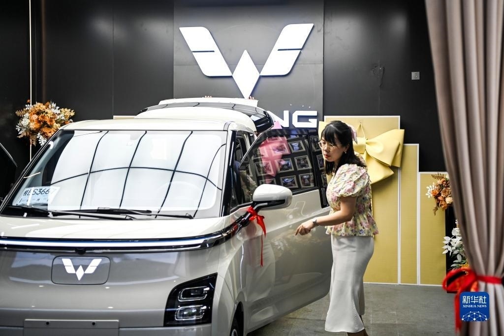 在廣西柳州市一家新能源汽車銷售店內(nèi),一位車主提驗(yàn)新車(7月20日攝)。新華社記者 曹祎銘 攝