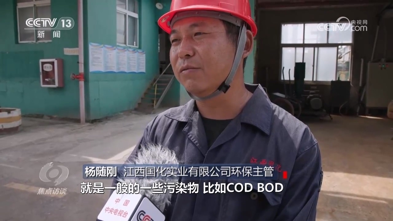 江西國化實(shí)業(yè)有限公司環(huán)保主管楊隨剛:“目前檢測就是一般的一些污染物,比如COD、BOD,還有pH有沒有影響,氨氮和總磷這些因子?!?/p>