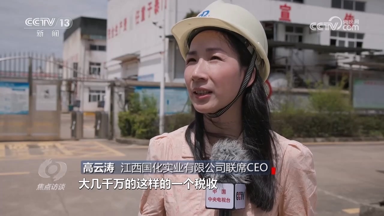江西國化實(shí)業(yè)有限公司聯(lián)席CEO高云濤:“我們基本上每年要交大幾千萬的稅收,從稅收貢獻(xiàn)和經(jīng)濟(jì)貢獻(xiàn)上,對當(dāng)?shù)貋碚f肯定是比較核心的?!?/p>