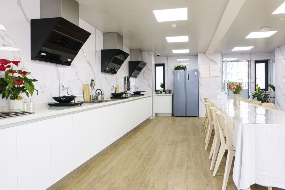 閔行區(qū)新時代城市建設者管理者之家的共享廚房和共享洗衣房。