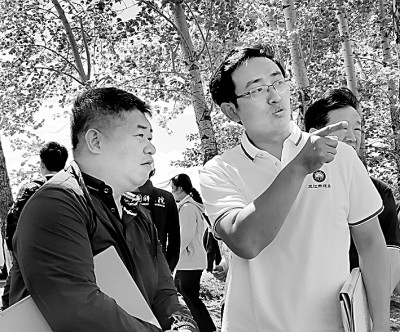 劉煥軍(右二)組織專家在三江示范區(qū)實(shí)地考察。資料圖片