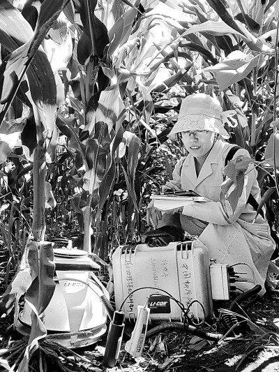 “隊(duì)員們每天早上5點(diǎn)就要前往試驗(yàn)田,趕上洪澇就得穿著靴子蹚過及膝的水,水灌進(jìn)靴筒,就像腿上綁了沙袋走在沼澤地里一樣。每個(gè)人還要提著兩個(gè)設(shè)備采樣,騰不出手扒開玉米葉子,大家就用頭頂出了一條路,臉上免不了被葉子劃傷。晚上回寢室,刷掉靴子里的泥,就得晚上12點(diǎn)多了。第二天早上5點(diǎn),又要開始新一天的采樣?!眻F(tuán)隊(duì)成員王軼昂說。