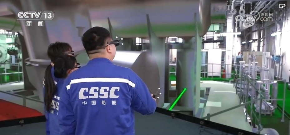 總臺央視記者 吳天白:如今造船靠的就是這艘“數(shù)字樣船”,戴上3D眼鏡便置身于一艘液化氣船的機艙,不僅能將船艙內(nèi)的情況盡收眼底。數(shù)字化工具就像庖丁解牛,把船舶這個巨系統(tǒng)拆解得清清楚楚,整合得天衣無縫,從而提升設(shè)計、制造的效率。
