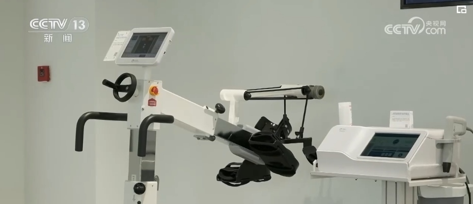 總臺記者 竇筠韻:幫助病人進(jìn)行康復(fù)的機(jī)器人,可以根據(jù)病人手部力量的多少進(jìn)行輔助推力,機(jī)器界面上還有各種有趣的游戲,使得康復(fù)訓(xùn)練不無聊。