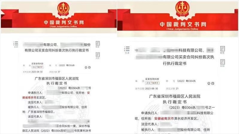 ·深圳市福田區(qū)人民法院的兩份執(zhí)行裁定書(shū)將江蘇南京錯(cuò)寫(xiě)成“安徽省南京市”,已從裁判文書(shū)網(wǎng)撤下。