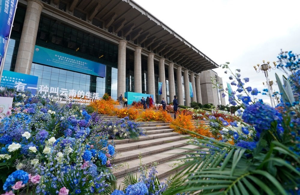這是2023年12月5日拍攝的第五屆世界媒體峰會(云南分會場)暨第二屆大象國際傳播論壇舉辦地昆明海埂會堂一景。新華社記者 陳欣波 攝