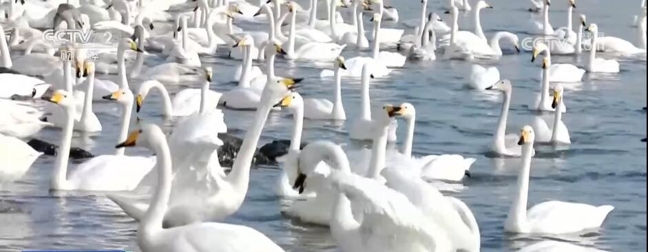 總臺(tái)記者 柳棟:我所在的位置是山東榮成大天鵝國家級(jí)自然保護(hù)區(qū),多年來這里形成了煙墩角、天鵝湖和櫻花湖三處大天鵝的集中區(qū)。今年遷徙的1萬多只大天鵝,目前九成以上已經(jīng)抵達(dá)這里,僅我所在的保護(hù)區(qū)范圍里就有超過6000多只。這里的工作人員告訴我,這些大天鵝是從3000多公里外的西伯利亞等地區(qū)長(zhǎng)途飛行45天左右才能抵達(dá)的。飛抵后,大天鵝會(huì)在這里越冬,直到來年三四月份才會(huì)離開。因此,這里的大天鵝不再忙于練習(xí)飛翔和補(bǔ)充體力,而是從容不迫地開啟了度假模式,游客們也可以近距離與它們進(jìn)行互動(dòng)。