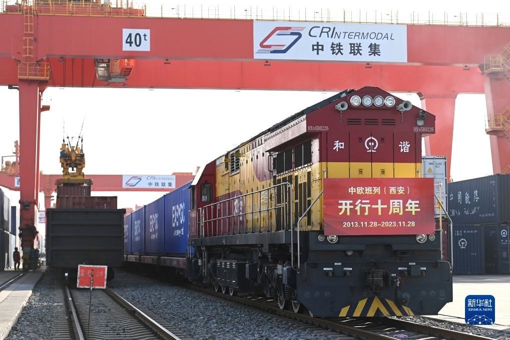 2023年11月28日,X8155次中歐班列在西安國(guó)際港站等待出發(fā)。新華社記者 鄒競(jìng)一 攝
