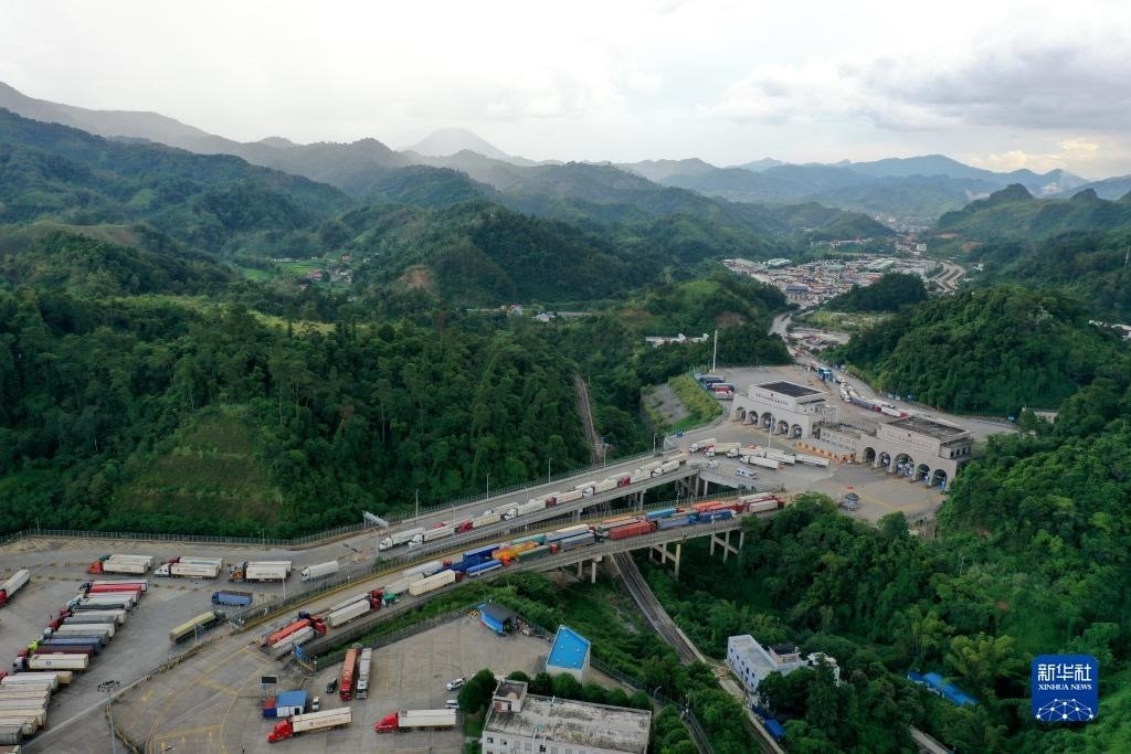 這是繁忙的廣西憑祥友誼關(guān)口岸(2023年9月9日攝,無(wú)人機(jī)照片)。新華社記者 曹祎銘 攝