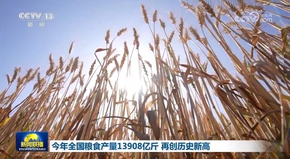 央視網(wǎng)消息(新聞聯(lián)播):國(guó)家統(tǒng)計(jì)局今天(12月11日)發(fā)布全年糧食產(chǎn)量數(shù)據(jù),2023年全國(guó)糧食總產(chǎn)量達(dá)13908.2億斤,再創(chuàng)歷史新高,連續(xù)9年穩(wěn)定在1.3萬(wàn)億斤以上。