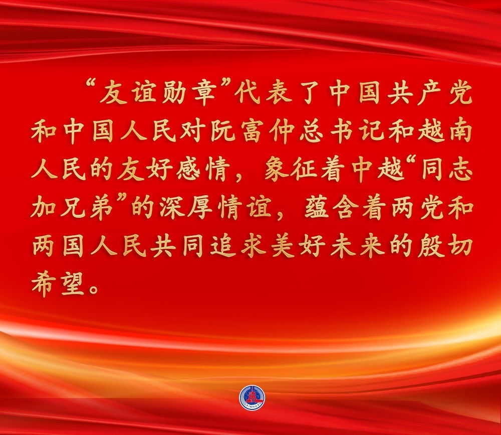 2022年10月31日,中共中央總書記、國家主席習(xí)近平在北京人民大會(huì)堂向越共中央總書記阮富仲授予中華人民共和國“友誼勛章”,并舉行隆重頒授儀式。