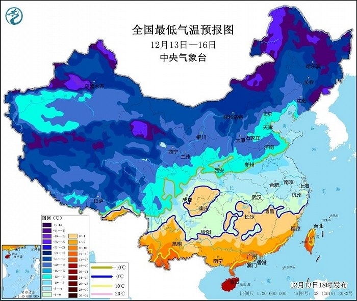 預(yù)計(jì),12月13日夜間至16日,一股強(qiáng)寒潮將自新疆開(kāi)始,自西向東、自北向南影響我國(guó),大部地區(qū)將先后出現(xiàn)4~6級(jí)偏北風(fēng),氣溫隨之下降8~12℃,西北地區(qū)、內(nèi)蒙古中西部、華北西部和南部、黃淮北部及江淮東部、江南、華南大部、貴州等地的部分地區(qū)降溫可達(dá)14℃以上。新疆山口地區(qū)有9~10級(jí)、陣風(fēng)12~13級(jí)大風(fēng),東部和南部海區(qū)有6~8級(jí)、陣風(fēng)9~10級(jí)大風(fēng)。17日早晨最低氣溫0℃線可南壓至貴州南部和江南北部一帶,-10℃線位于黃淮北部至秦嶺一帶。華北、黃淮北部等地的部分地區(qū)最低氣溫將接近或跌破歷史同期極值。