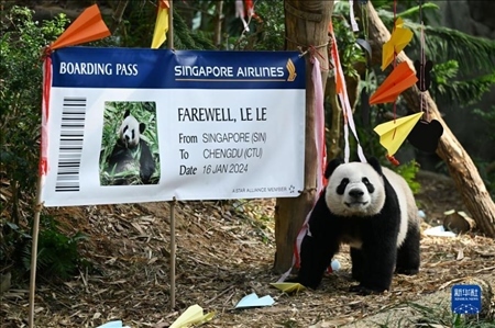 12月13日,新加坡河川生態(tài)園為首只在新加坡出生的大熊貓“叻叻”舉行歡送會(huì)。“叻叻”將于2024年1月16日啟程返回中國(guó)。