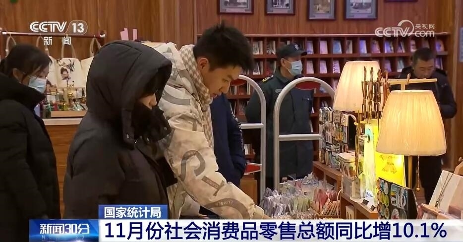 市場銷售增勢較好,服務(wù)消費持續(xù)較快增長,11月份,社會消費品零售總額同比增長10.1%,比上月加快2.5個百分點。
