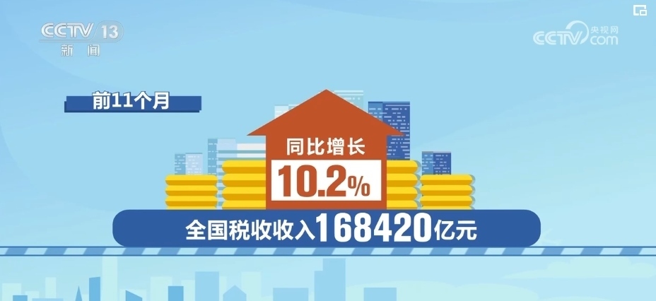 總體來看,11月當月,全國稅收收入10579億元,同比增長3.2%。前11個月,全國稅收收入168420億元,同比增長10.2%。