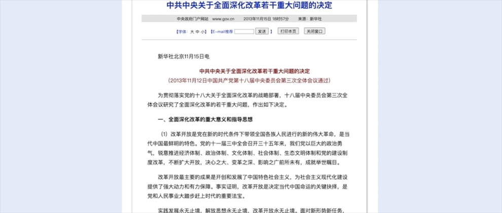2013年11月,黨的十八屆三中全會(huì)通過(guò)由習(xí)近平總書(shū)記親自主持起草的《中共中央關(guān)于全面深化改革若干重大問(wèn)題的決定》?!稕Q定》首次提出全面深化改革的總目標(biāo)——完善和發(fā)展中國(guó)特色社會(huì)主義制度,推進(jìn)國(guó)家治理體系和治理能力現(xiàn)代化。