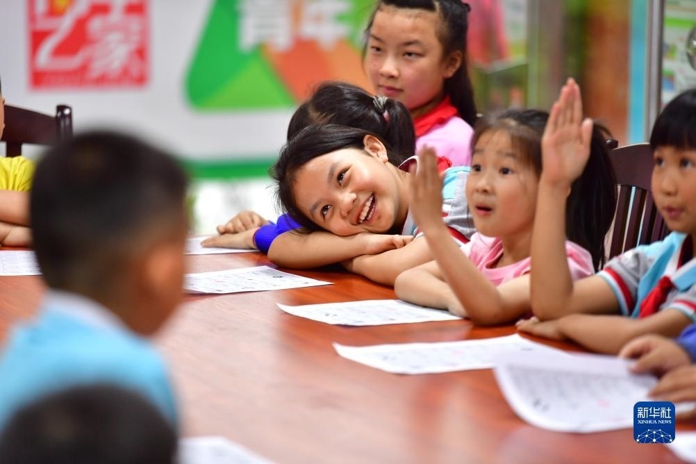 在廣西柳州市融水苗族自治縣易地扶貧搬遷安置小區(qū)苗家小鎮(zhèn)青年之家“六點(diǎn)小課堂”,孩子們參與興趣活動(2022年5月5日攝)。近年來,廣西柳州市融水苗族自治縣團(tuán)縣委在易地扶貧搬遷安置小區(qū)苗家小鎮(zhèn)、苗美社區(qū)開設(shè)青年之家“六點(diǎn)小課堂”,定期組織青年志愿者,為這里的青少年開展功課輔導(dǎo)、自護(hù)教育、科技小課堂等活動。新華社記者 黃孝邦 攝