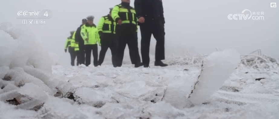 南方多地則遭遇了低溫凝凍天氣。在貴州三都縣某縣道,民警在對(duì)凝凍路段展開(kāi)巡查工作時(shí)發(fā)現(xiàn),不少車(chē)輛在坡路上頻頻打滑。其中一輛自駕車(chē)發(fā)生甩尾,滑入道路排水渠。