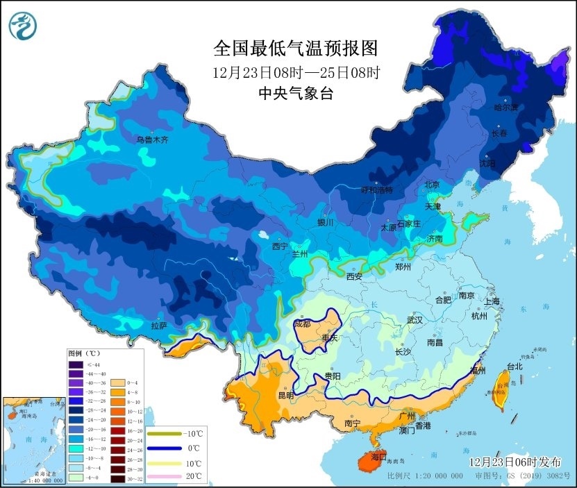 央視網(wǎng)消息:中央氣象臺12月23日06時發(fā)布低溫藍(lán)色預(yù)警:預(yù)計,12月23日08時至25日08時,內(nèi)蒙古河套地區(qū)、陜西北部、華北西部和中南部、東北地區(qū)南部、黃淮及其以南大部地區(qū)日最低氣溫或平均氣溫較歷史同期偏低5℃以上,其中,內(nèi)蒙古河套地區(qū)、遼寧北部、河北中南部、江南大部、華南北部等地的部分地區(qū)偏低7℃以上,最低氣溫0℃線將位于貴州西南部至華南北部一帶。
