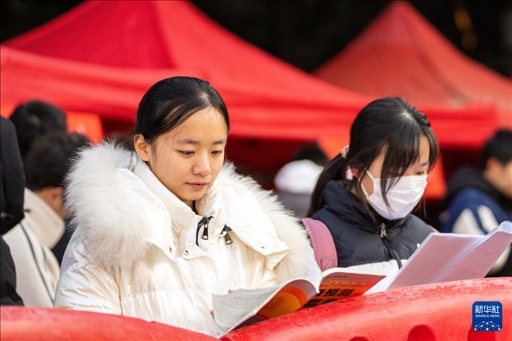 12月23日,在湖南省長沙市,考生在湖南農業(yè)大學考點排隊時抓緊復習。