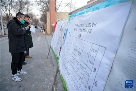 12月23日,考生在寧夏銀川市第二中學考點外查看考場分布圖。